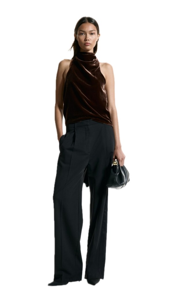 Need something for an upcoming holiday party? These Chocolate Velvet Wide Leg Trousers from Mango are a must. Not to mention they will keep you warm and these can be a part of your holiday wardrobe again and again.