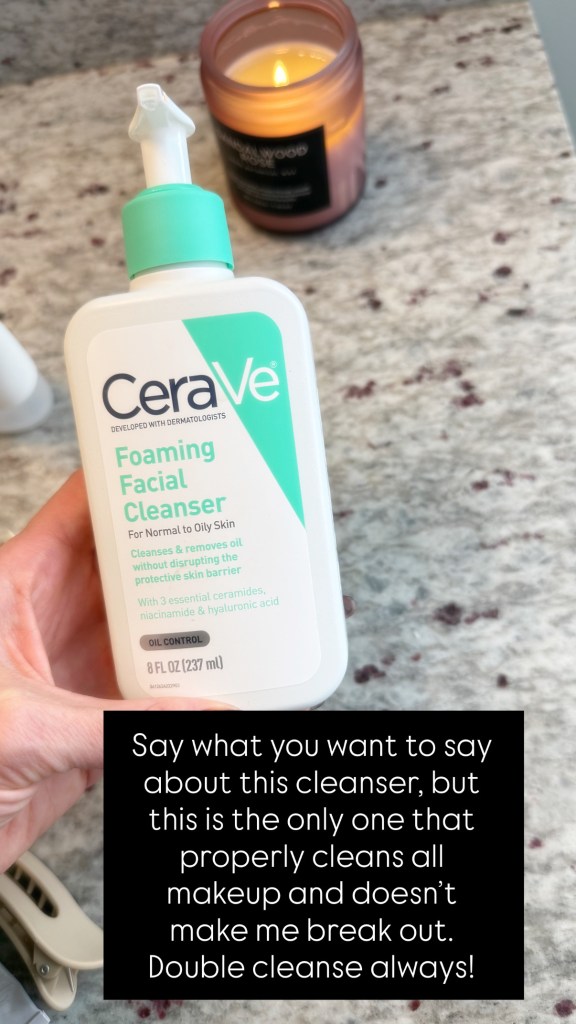 I’m serious when I’m telling you I have tried soooo many different kinds of cleansers, both high and low end. I keep coming back to this one by CeraVe. It’s the only one that fully removes my makeup. This is what works for me time and time again. Note- although my skin is more on the dry side, I still like the Foaming Facial Cleanser which is for normal to oily skin. I’ve tried the one for dry skin and it makes me break out.