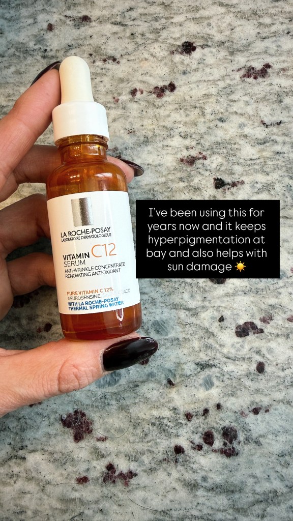 I’ve been using vitamin C on my skin now for over 10 years. I believe this is KEY to reversing sun damage and I’ve noticed it helps to heal any hyperpigmentation I get from acne scars. If you live somewhere sunny- you should absolutely be utilizing vitamin c to help combat sun damage. I’ve used a few different brands but La-Roche-Posay’s Vitamin C12 I love and has remained consistent with results. Also- this one contains hyaluronic acid and salicylic acid.