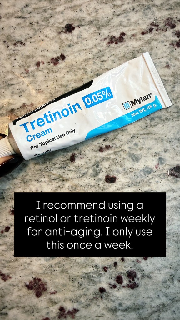 For long term anti-aging results, I highly recommend using a retinol or tretenoin. I know most of these products are advised to start off once or twice a week and then build your skin up to a tolerance of nightly use, but I’m only using this 1-2 times a week. I’ve tried several times to work my skin up to more than 3 times a week and I end up breaking out. So for now I’m going to listen to my skin and do twice a week. If you skin can tolerate it without issues, I say go for it.