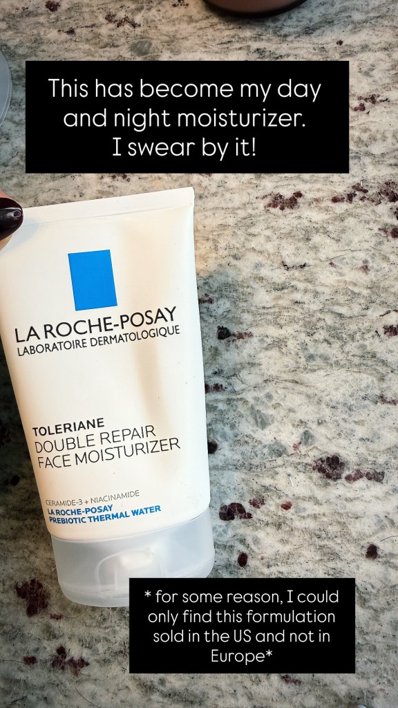 I LOVE this moisturizer and to assist in minimizing the use of too many products, I use this Toleriane Double Repair Moisturizer day and night. However- I believe this exact formulation is only found in the US market, because I could never find this on my German amazon account or locate it in any pharmacies in Europe. I had to order it from the US and it would take 3 weeks to a month to get to me in Germany! Bonus* they have an SPF version as well.