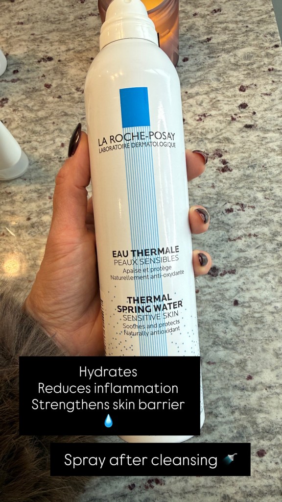This is one of the products I was recommended at Cible Skin in Paris during my treatment. I do feel a difference with this! The large can will last you several months. I spray this twice a day in the morning and at night after cleansing. Avene, and Evian also make their own version of eau thermale, but my favorite so far is this one by La Roche-Posay.
