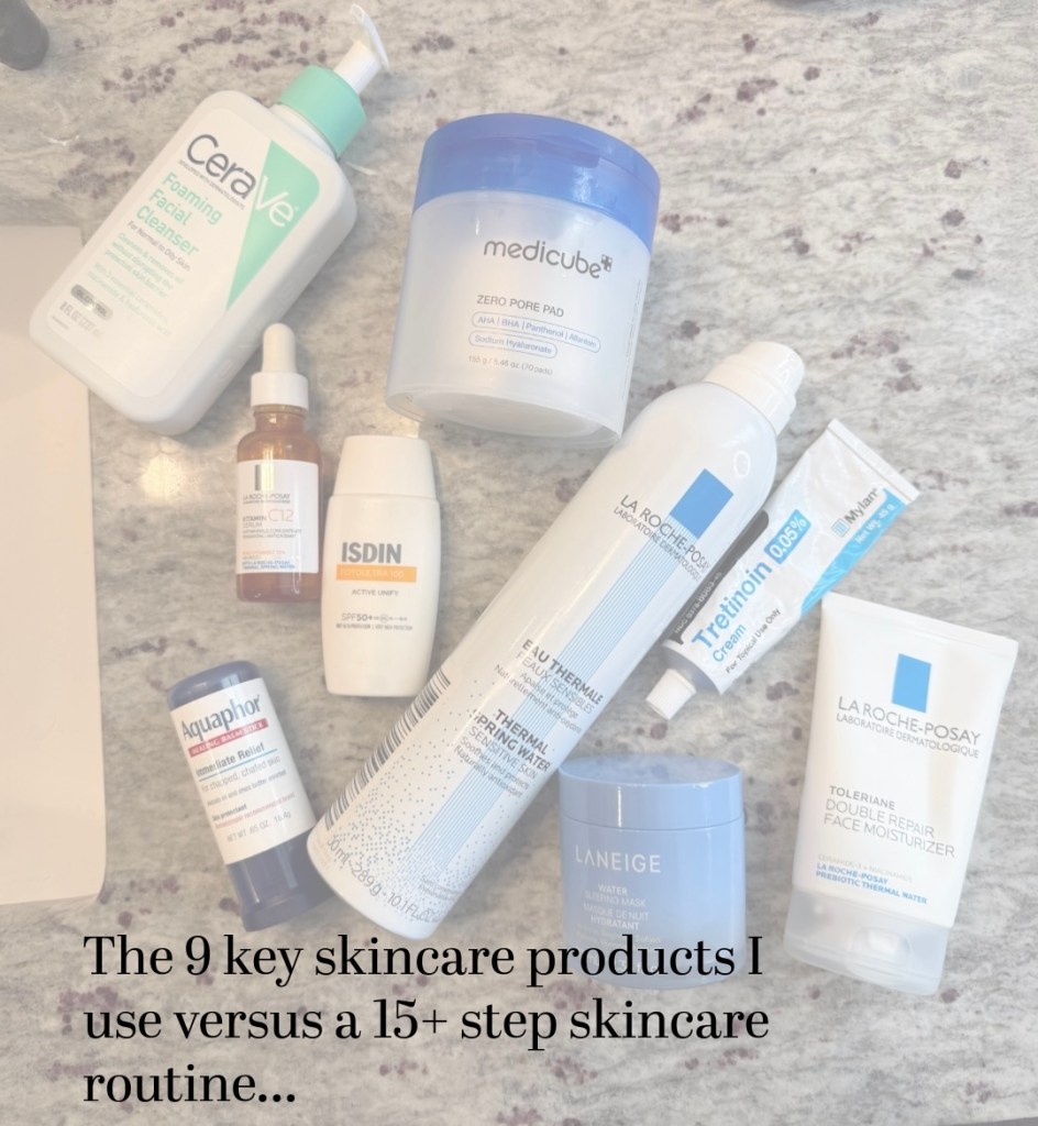 I wanted to follow up on a post that I made on my instagram. On my last blog post you can read here, I mentioned I was leaving behind 15 + skincare routines. I feel like over the years I’ve been sold on having a lengthy skincare routine. As a licensed esthetician, I do think it’s good to have a routine, however I feel like we have been sold on being told we should have 15+ products to achieve good skin. Unpopular opinion- I disagree.