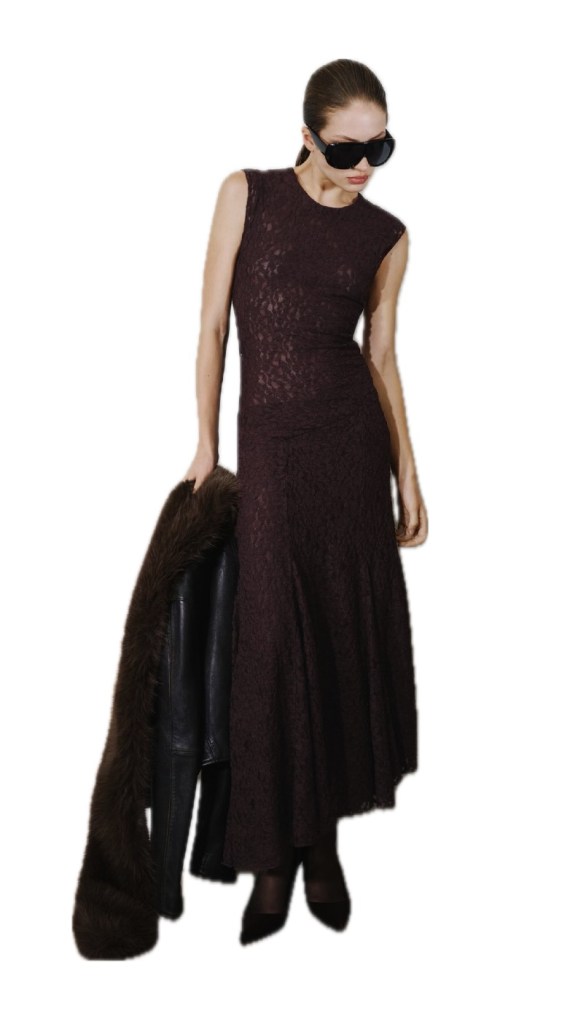If you looking to try something sleek but feeling a little risqué, this Asymmetric lace dress by MANGO is a great option. It’s fitted brown lace without sleeves works perfect as a transitional piece (think winter into Spring, Summer into Fall). The top portion appears to be transparent lace, however you can aways wear a moto jacket or blazer over this look to keep it modest if needed.