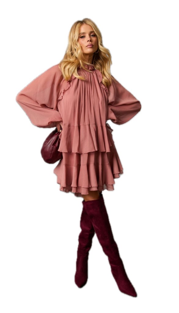 A common style I’m seeing across the board with designers and retailers are ruffles and draping. Ruffles and draping can be bold or subtle, but which ever you choose will guarantee an elegant look. Check out this Toast Season Ruffle Chiffon Mini Dress by VICI Collection– it’s divine!
